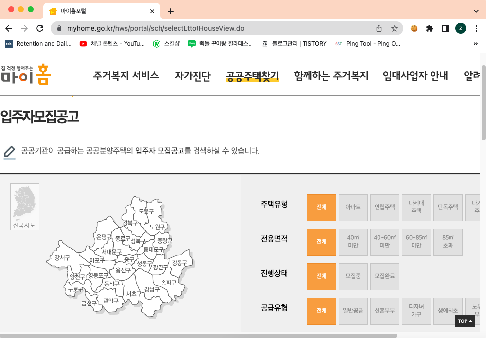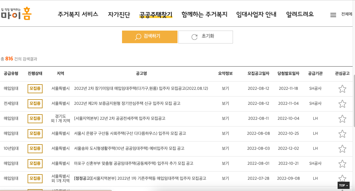 서울특별시에서 공공주택 찾아보기 (마이홈 - 공공주택 찾기)