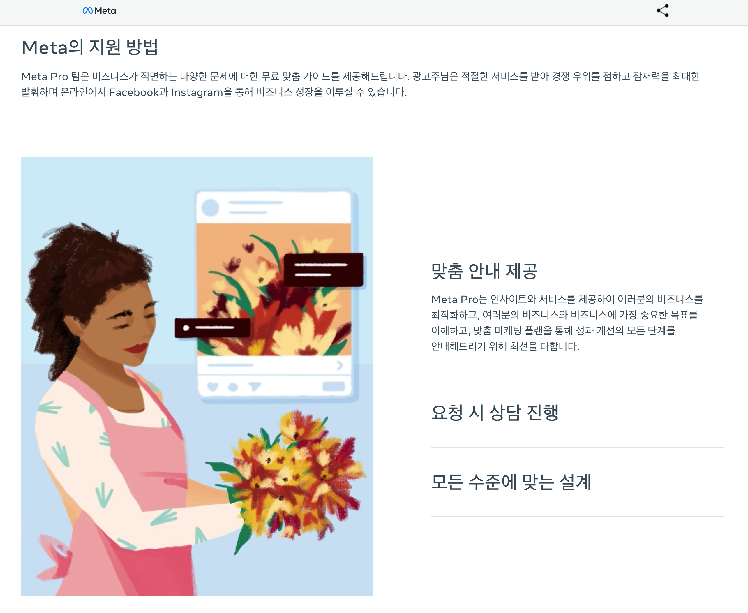 첫 번째 일단 메타 마케팅 프로팀에서 연락 오는 대다수가 한국어를 조금 할 줄 아는 '외국인'에 가깝다 보니, 유창한 한국어를 구사하기는 해도 한국의 시장 특성에 대해 광고주보다 모르는 경우가 8할이다. 게다가 한술 더 떠서 이분들은 광고 계정을 검토할 시간이 그렇게 많지 않다. 결국엔 비즈니스나 광고주 특성을 이해하고 접근하는 게 아니기 때문에 컨설팅할 수 있는 내용도 한정적일 수밖에......