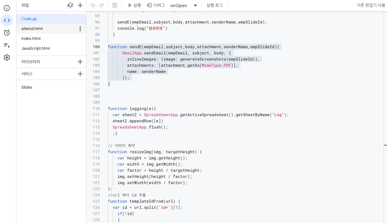 결론부터 이야기하자면, 이메일을 보내기 위해 GAS에서 변수를 만들고,