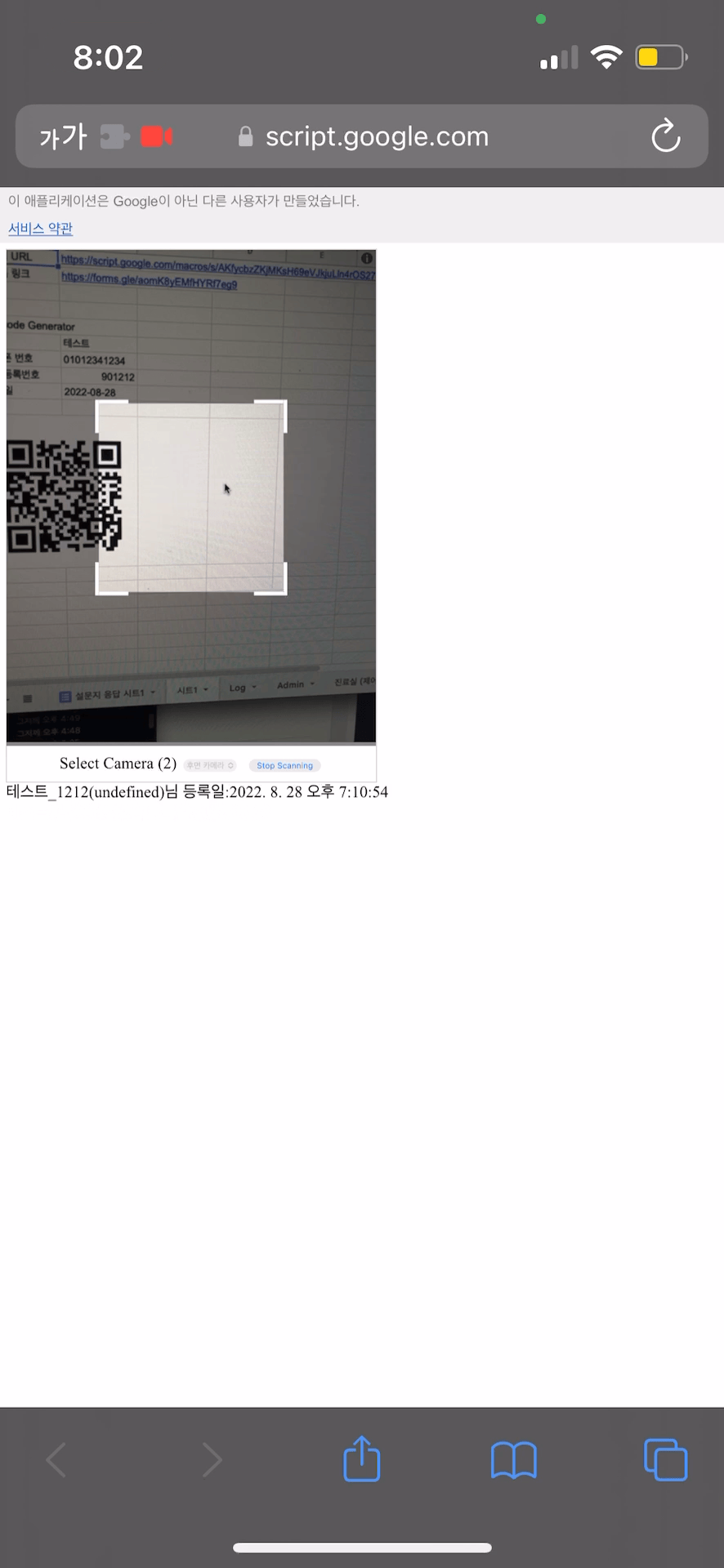 자바스크립트와 Jquery를 일부 활용하면 구글 스프레드시트에 스캐너 페이지를 띄워줄 수 있는데요~!